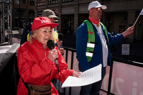 Auf einem der Demo voranfahrenden LKW sprach Ursula Engelen-Kefer, die Vorsitzende des SoVD-Landesverbandes Berlin-Brandenburg zu den Menschen auf der Straße. Dabei griff sie drängende Themen wie den Mangel an barrierefreien Wohnungen, den Umgang mit Menschen mit Behinderungen auf dem Arbeitsmarkt und das nach wie vor nicht inklusive Gesundheitswesen auf und rief die Politik zum Handeln auf.