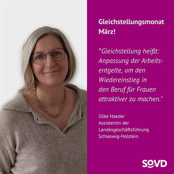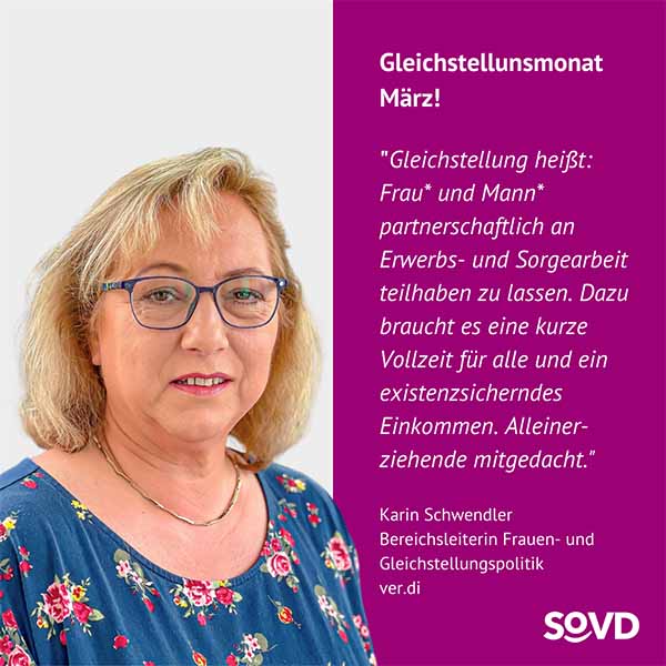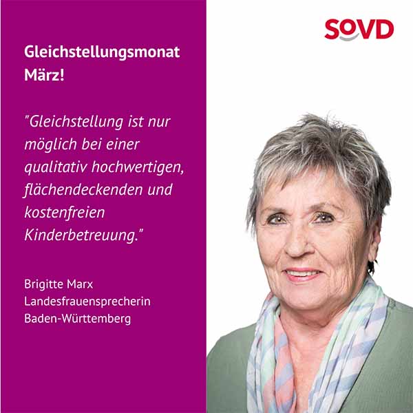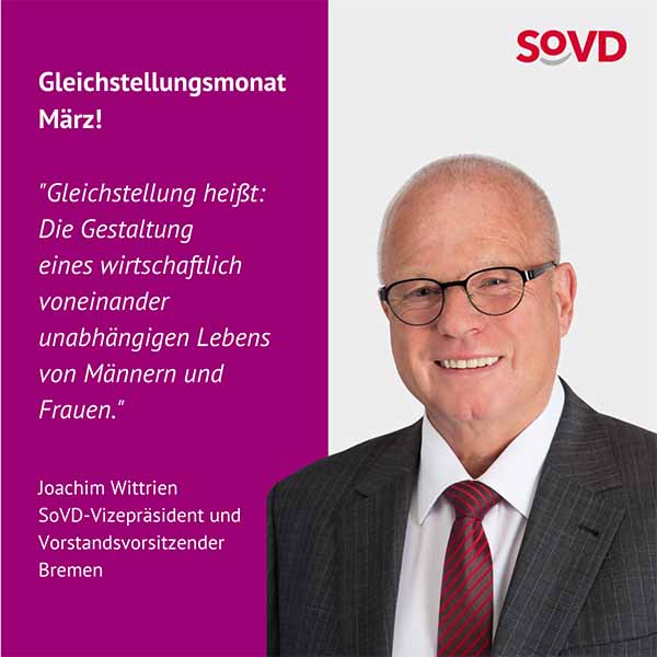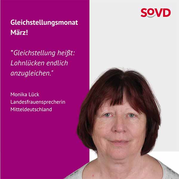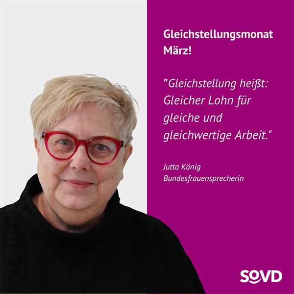 Die Forderungen des Verbandes zur Gleichstellung sind klar. Die SoVD-Bundesfrauensprecherin Jutta König betont: „Wir brauchen endlich gleiche Löhne, bessere Renten und eine faire Aufteilung von Sorge- und Erwerbsarbeit. Die Politik muss endlich aktiv werden, Lippenbekenntnisse reichen nicht mehr.“