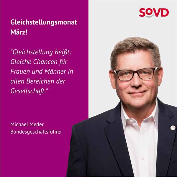 Im März erinnert der SoVD daran, dass das gesellschaftliche Ziel der Gleichstellung der Geschlechter auch 2025 noch lange nicht erreicht ist.