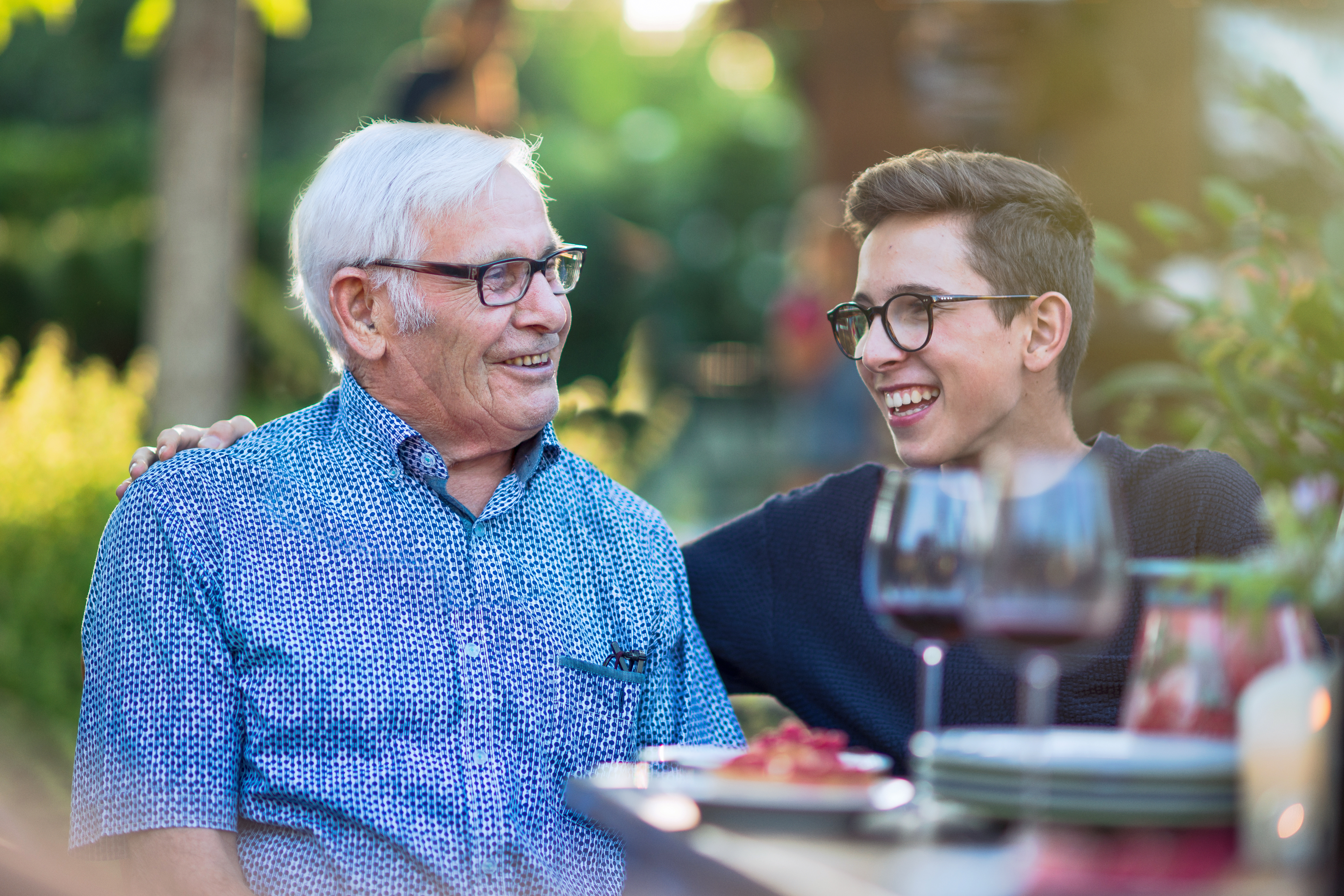 Alter und junger Mann sitzen gemeinsam am Tisch
