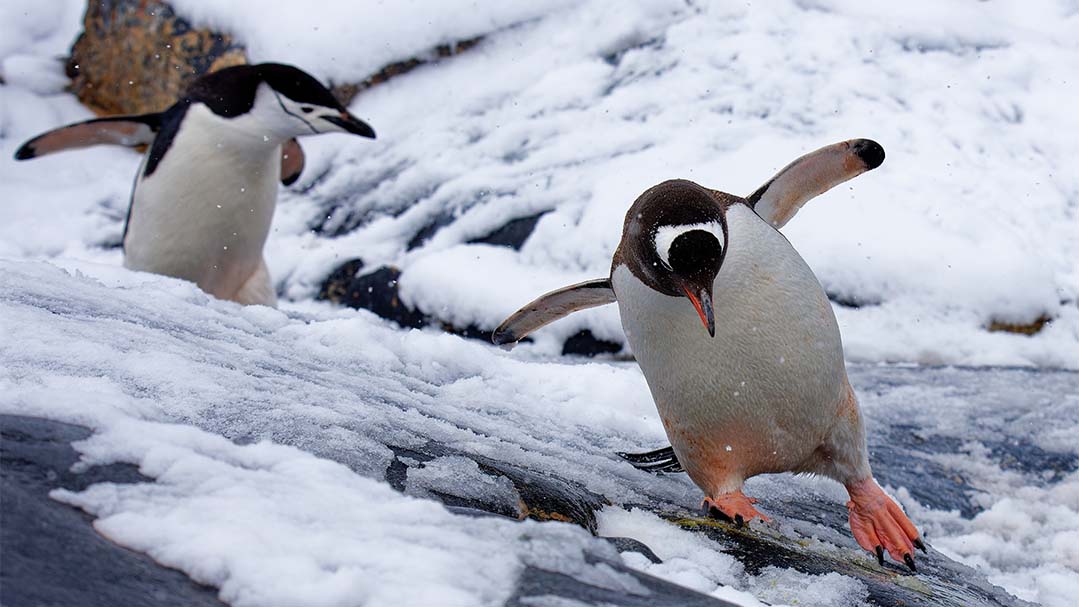 Pinguine sind es gewöhnt, bei Glätte unterwegs zu sein. Foto: Uwe Bauer / Adobe Stock