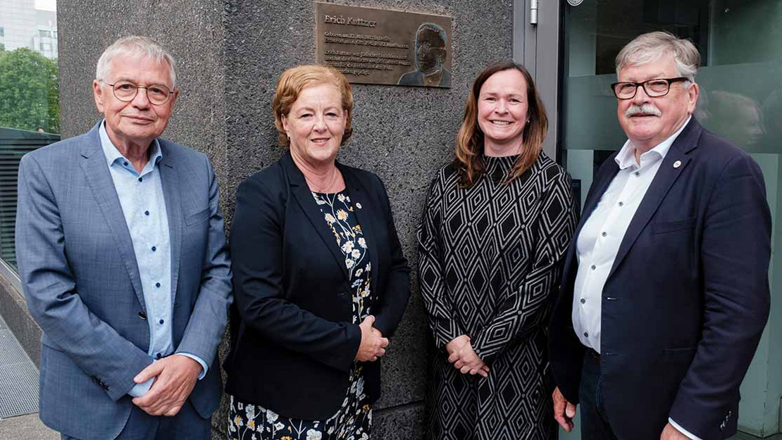 Neben dem Eingang zum „Erich-Kuttner-Haus“ erinnert nun eine Bronzetafel an den Mitbegründer des früheren Reichsbundes und heutigen SoVD. Zu deren Enthüllung waren haupt- und ehrenamtlich Aktive sowie Mitglieder von Verbandsrat und Bundeskonferenz erschienen.