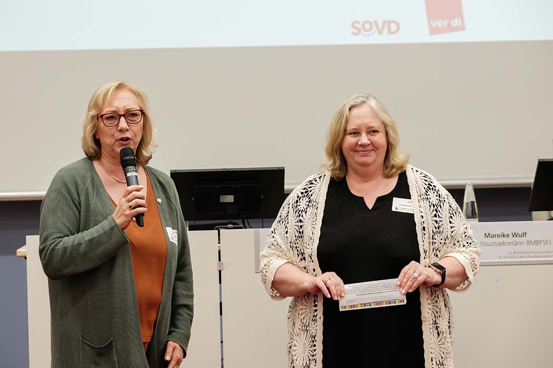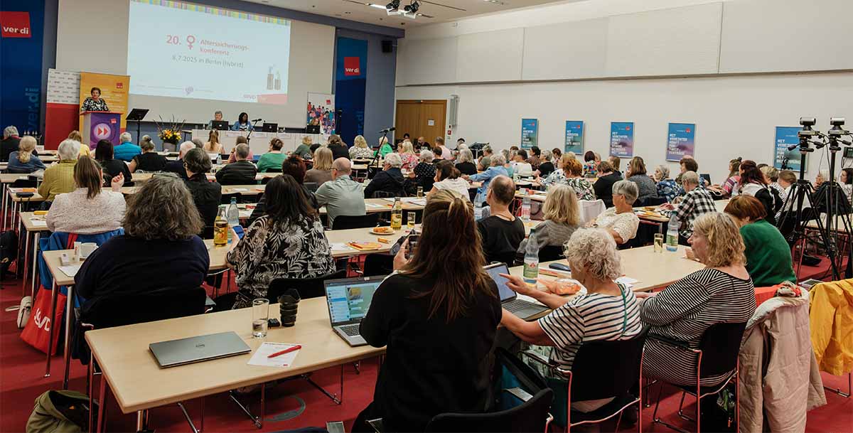 Die 20. Frauenalterssicherungskonferenz von SoVD und ver.di fand am 8. Juli im Haus der ver.di-Bundesverwaltung, Paula-Thiede-Ufer 10, 10179 Berlin statt. Thematischer Schwerpunkt waren die Vorstellungen und Positionen der neuen Koalition aus CDU, CSU und SPD zur Alterssicherung und zur Sorgearbeit. Kernfragen waren dabei: